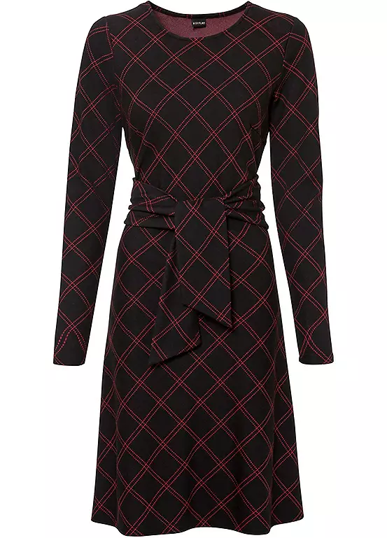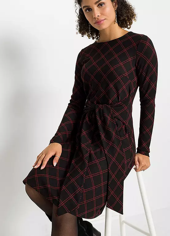 Checked dress with waist ties.