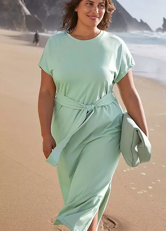 Cotton midi dress with loose sleeves and ties at the waist to add shape. 95% Cotton, 5% Elastane. Length approx. 126 cm.