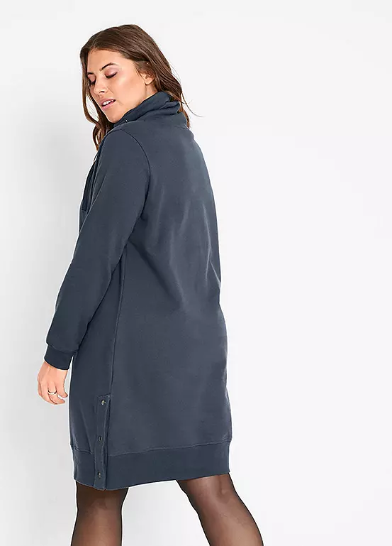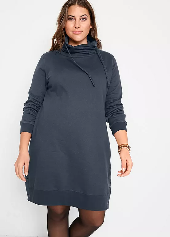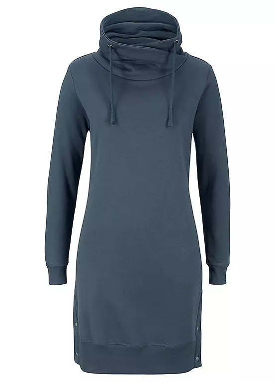 A sporty jersey dress with a high collar that can be adjusted using the drawstring ties. Machine washable. 100% Cotton. Length approx. 92 cm.
