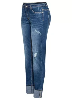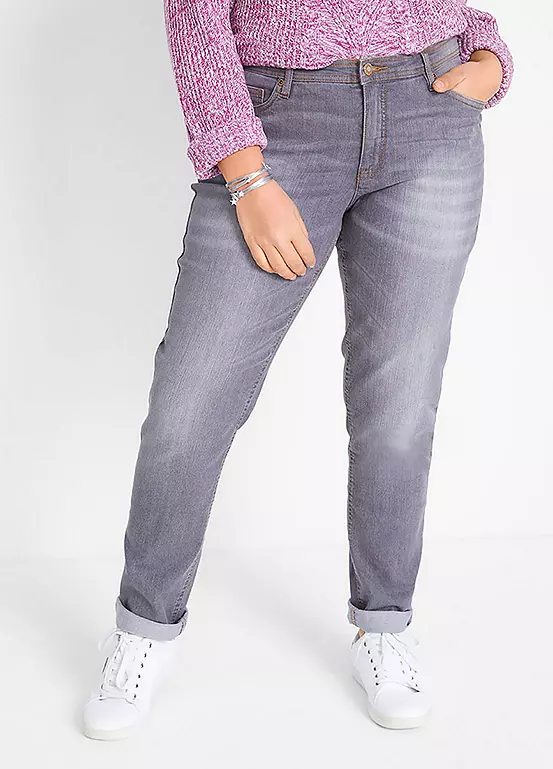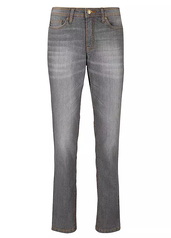 A pair of straight leg jeans in a classic 5 pocket cut. Machine washable. 82% Cotton, 17% Polyester, 1% Elastane.