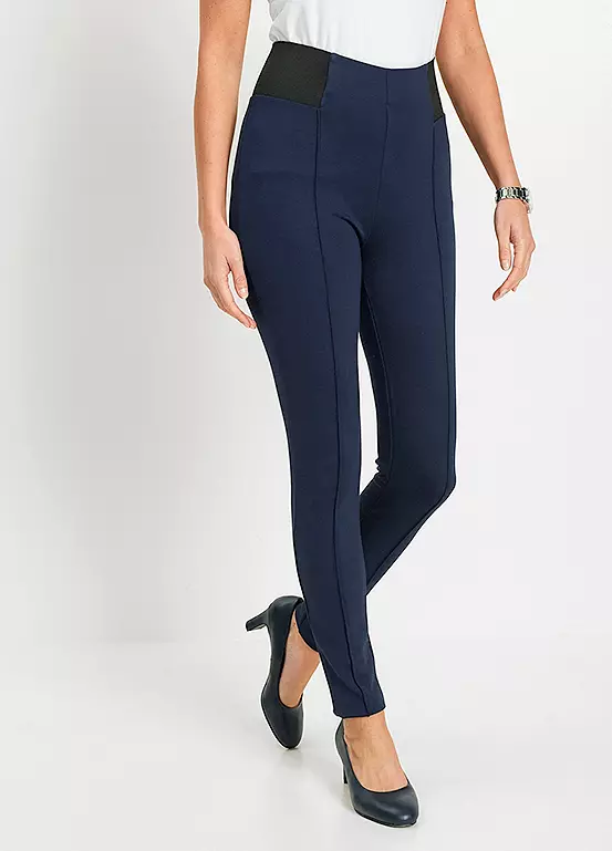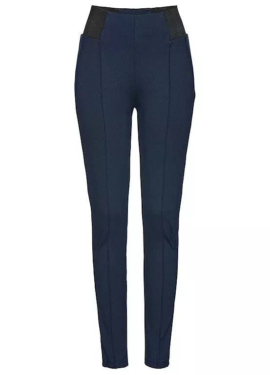 A pair of ankle length leggings with elasticated panels at the waist. Machine washable. 70% Viscose, 25% Polyester, 5% Elastane.