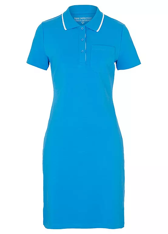 Preppy short sleeve dress with a polo collar. 100% Cotton. Length approx. 94 cm.