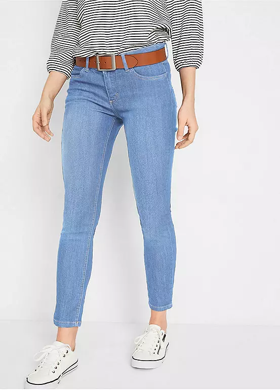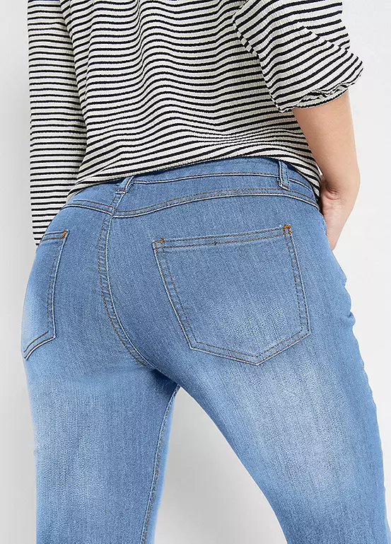 A slim fitting pair of stretch jeans with a cropped leg. Inside leg length approx. 71 cm.