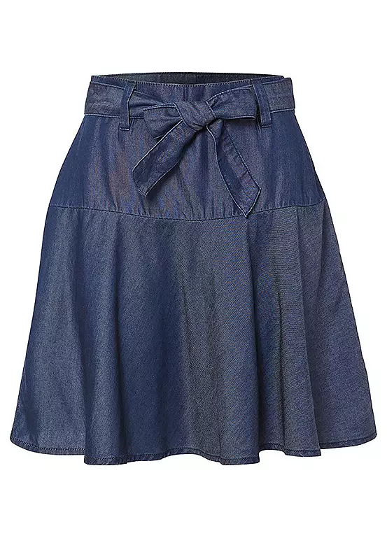 Belted denim skirt in sustainable Tencel material. Machine washable. 100% Sustainable Lyocell. Length approx. 46 cm.