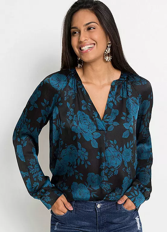 A floaty tunic with a floral design. Machine washable. Length approx. 62 cm.