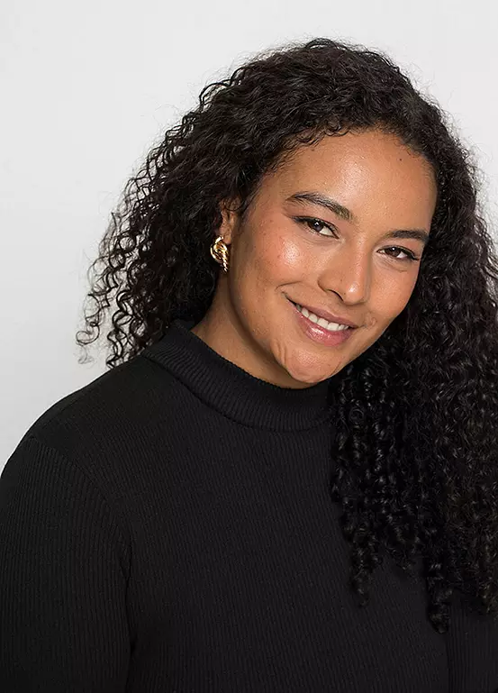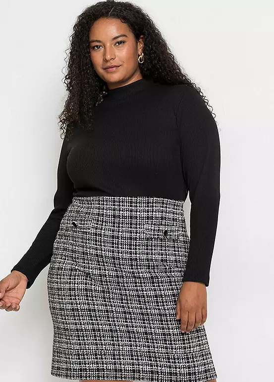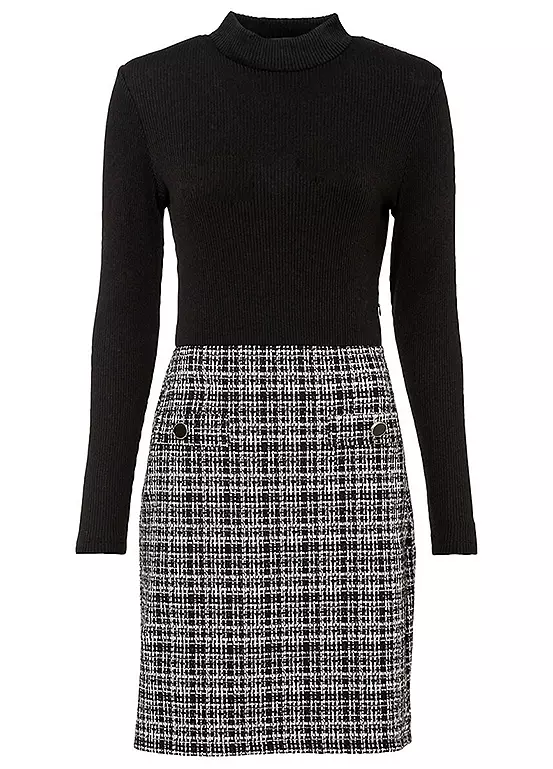 Stylish dress with a houndstooth contrast skirt. Length approx. 94 cm.