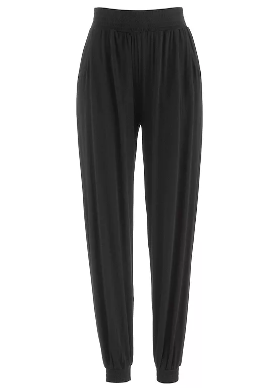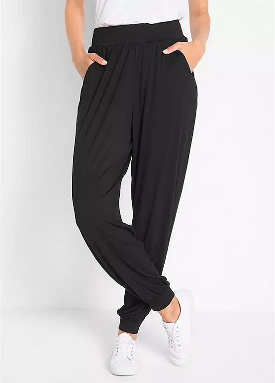 Pull on these super soft jersey trousers and relax! The elasticated waist won’t dig in and the loose tapered leg is perfect for summer. Machine washable. 95% Viscose, 5% Elastane.