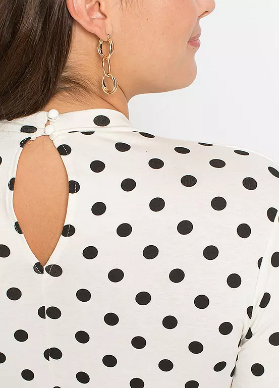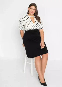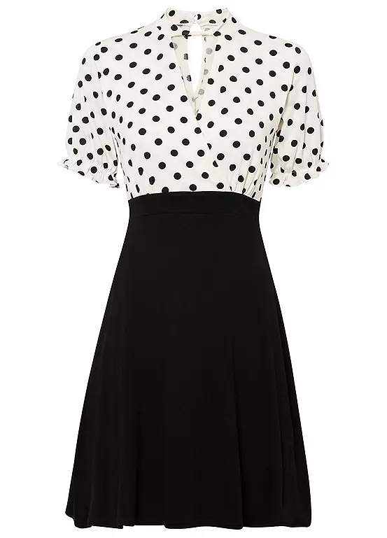 Wrap jersey dress with a polka dot bodice. Length approx. 94 cm.