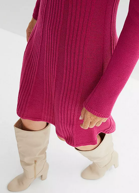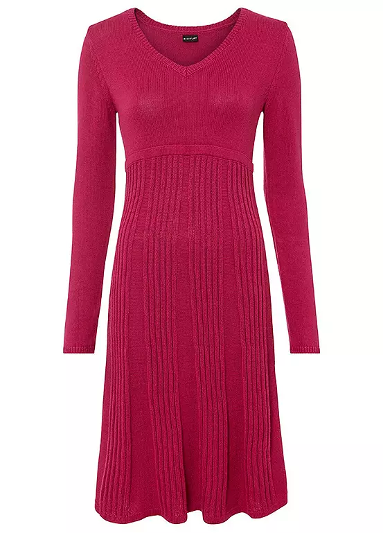 Knitted dress with a ribbed skirt. Machine wash at 40°C. 50% Cotton, 50% Acrylic. Length approx. 90 cm.