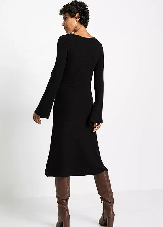 Midi length dress in a stretchy knit fabric with a square neckline. Length approx. 108 cm.