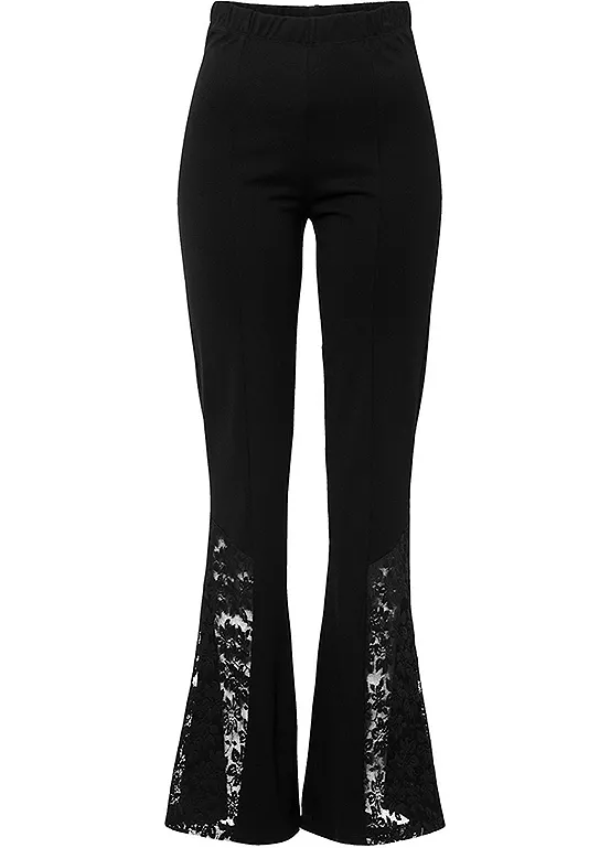 Bootcut leggings with lace at the lower leg. Machine washable.