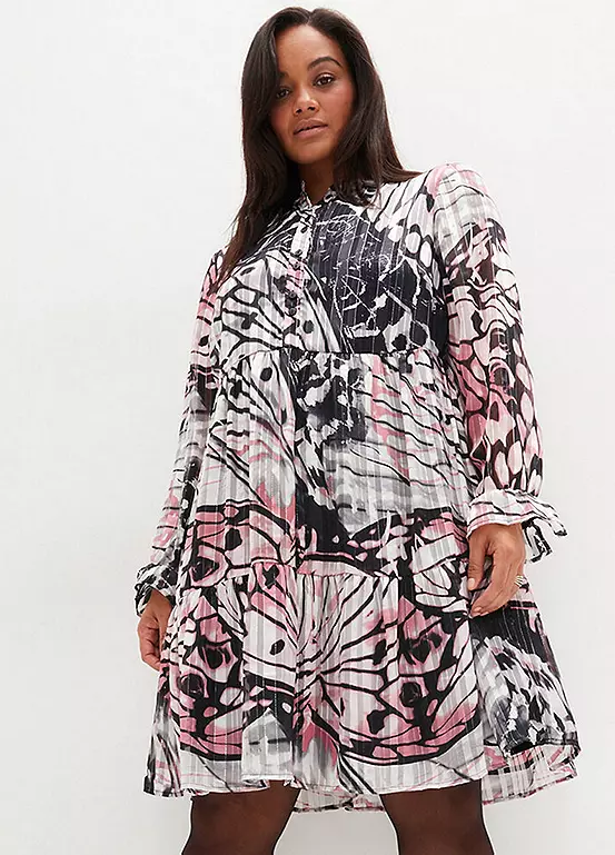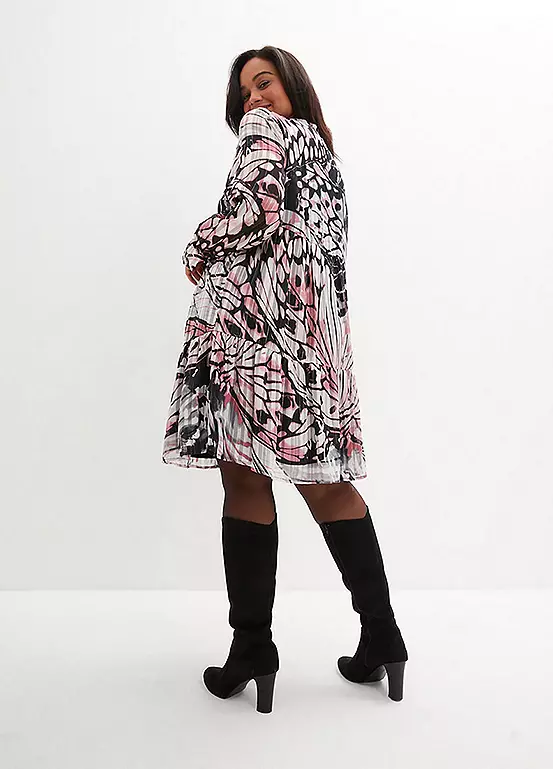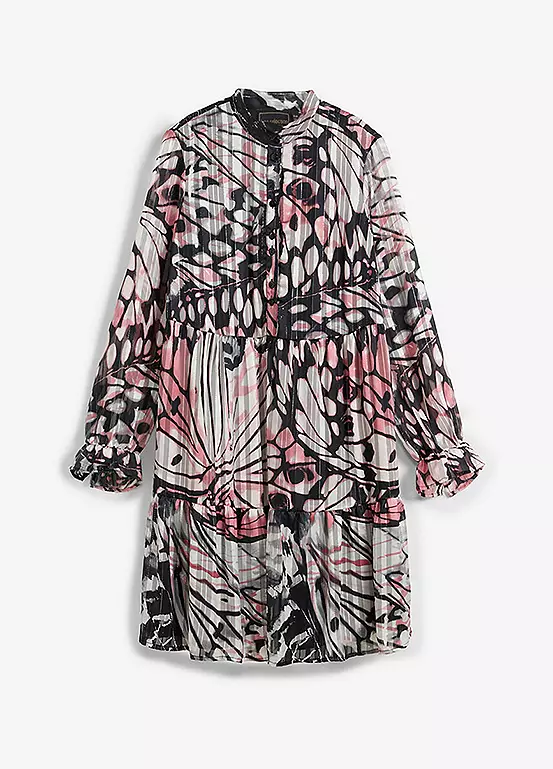 Chiffon shell dress with a leaf pattern. Machine wash. Length approx. 98 cm.