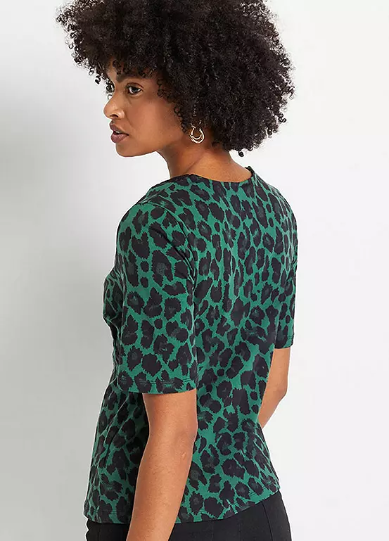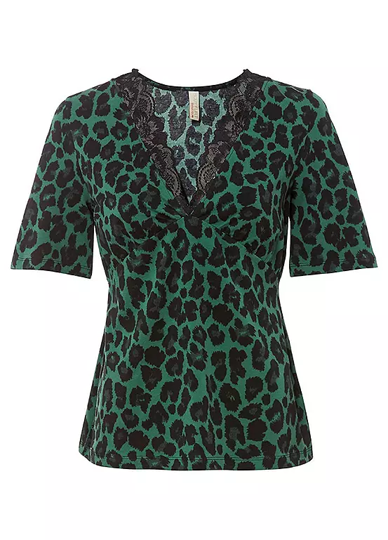 Animal print top with lace collar trim. 95% Cotton, 5% Elastane. Length approx. 60 cm.
