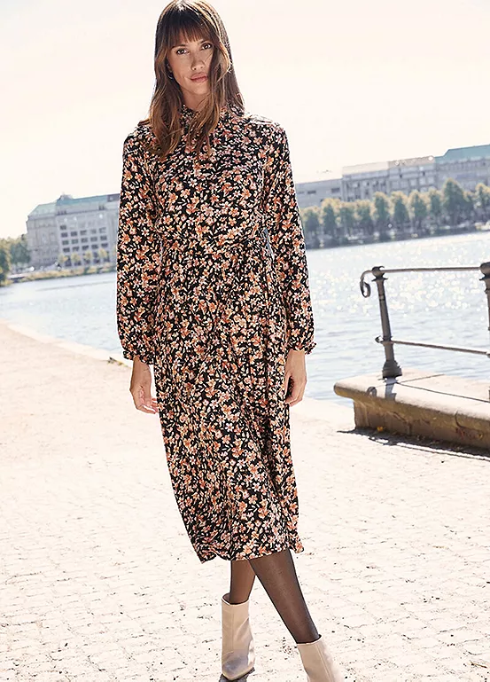 Printed dress with an elasticated waist. Machine washable. 100% Viscose. Length approx. 120 cm.
