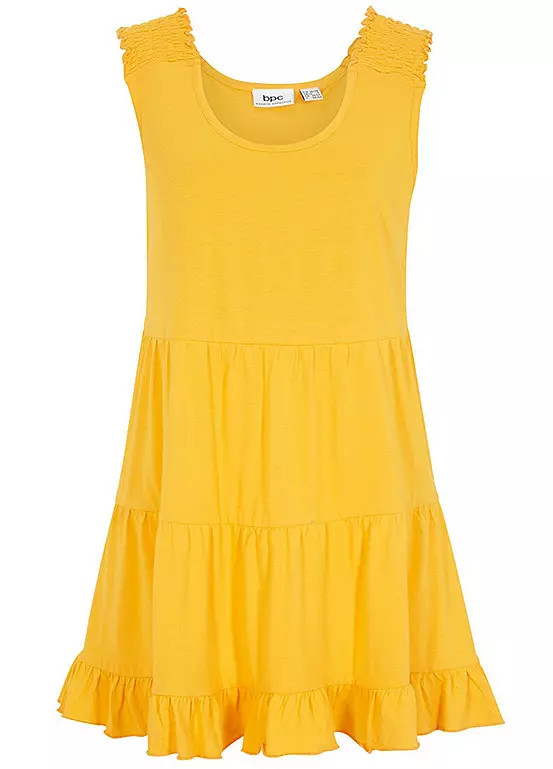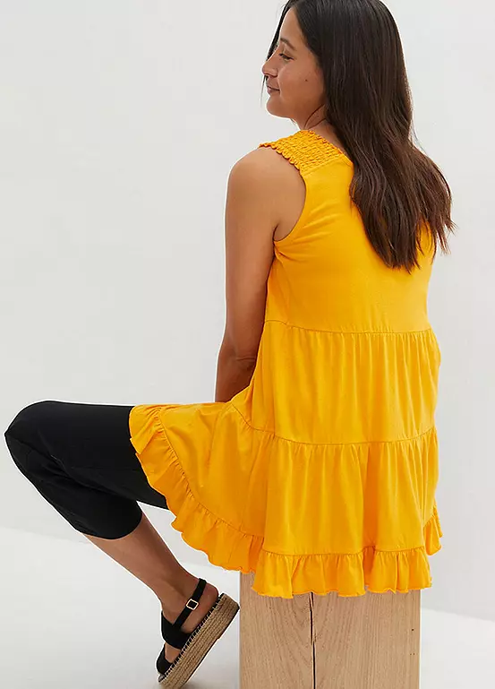 Extra long top with a tiered design and a loose A-line shape. Length approx. 76 cm.