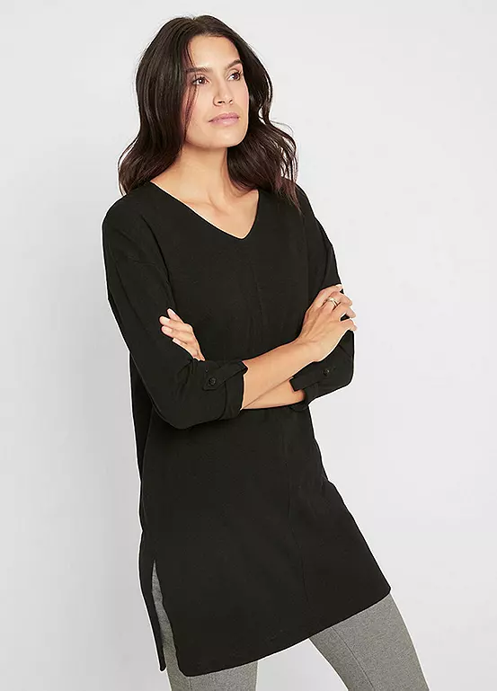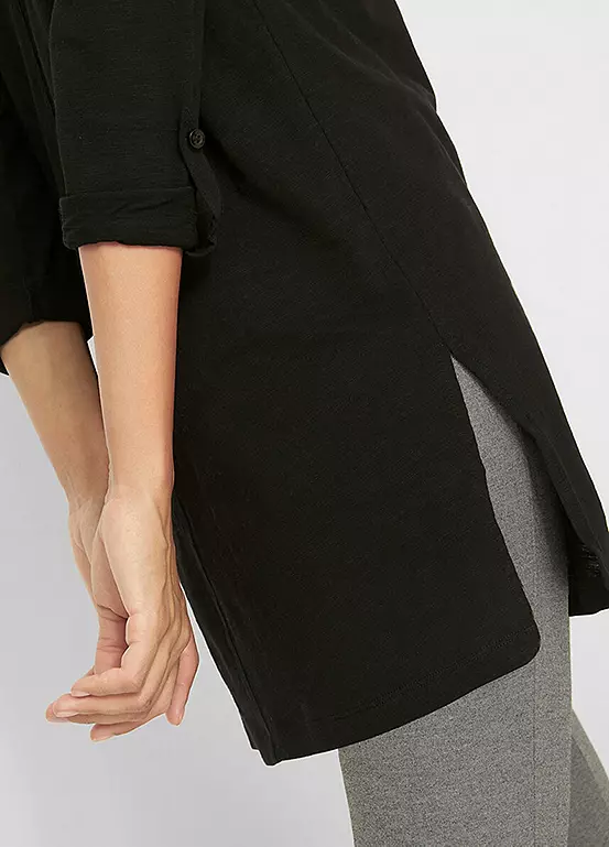 A V-neck top with turn-up sleeves and side vents for excellent freedom of movement. Length approx. 82 cm.