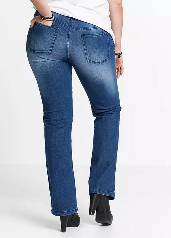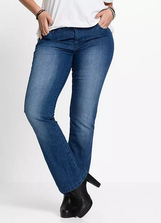 These stretch jeans come with a flattering bootcut leg. Machine washable. 79% Cotton, 19% Polyester, 2% Elastane. Short inside leg approx. 76.5 cm. Regular inside leg approx. 83.5 cm.