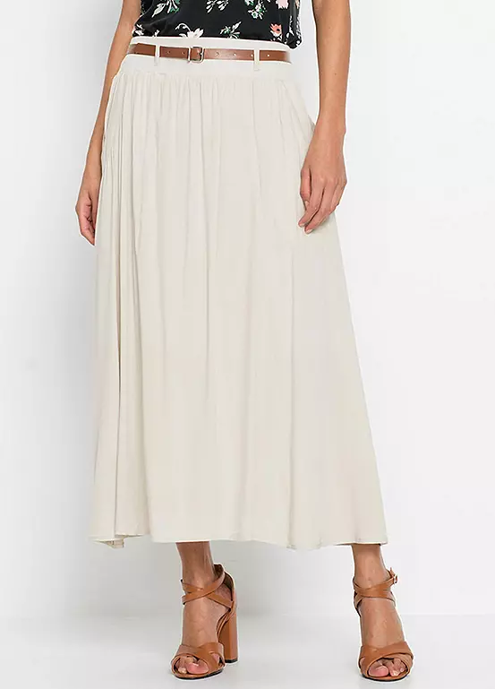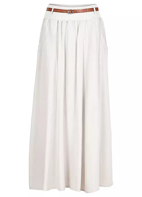 Long skirt with a buckle belt. Shell: 100% Sustainable Viscose Hem: 95% Cotton, 5% Elastane Lining: 100% Cotton. Length approx. 84 cm.