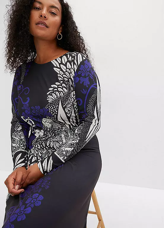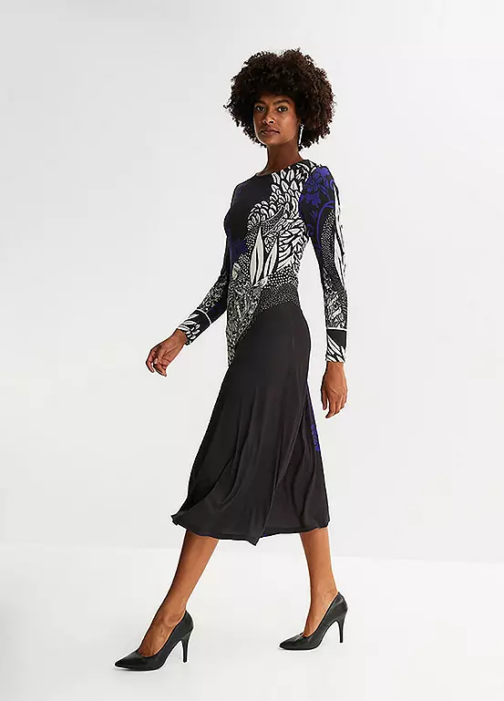 Long sleeve midi dress with net detailing. Length approx. 126 cm.