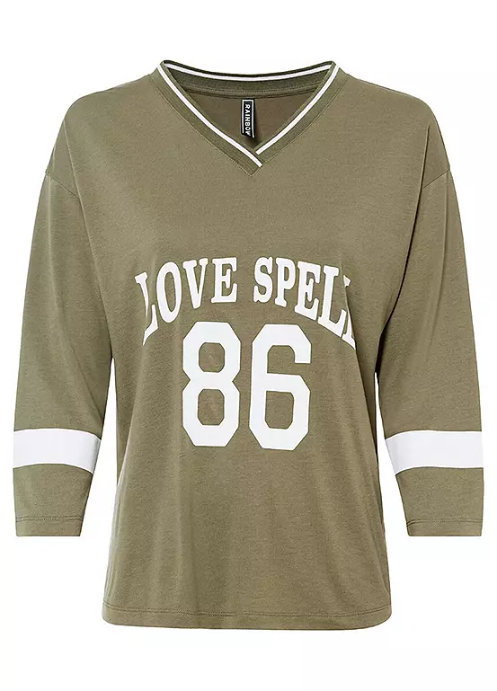 Baggy cotton T-shirt with a print. Machine washable. 50% Polyester, 50% Viscose. Length approx. 60 cm.