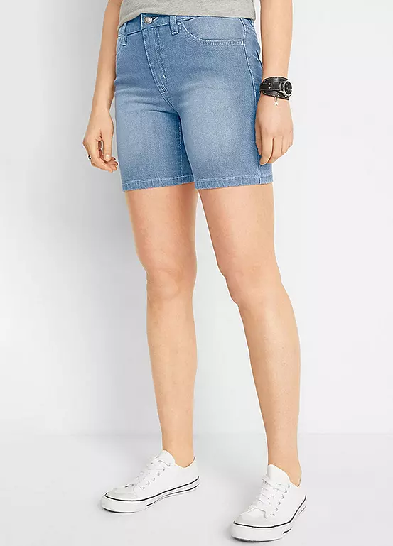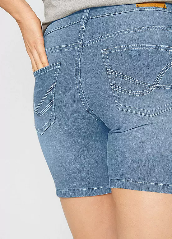 Two pairs of shorts in stretchy denim.