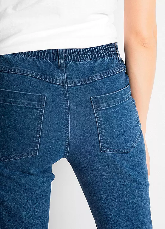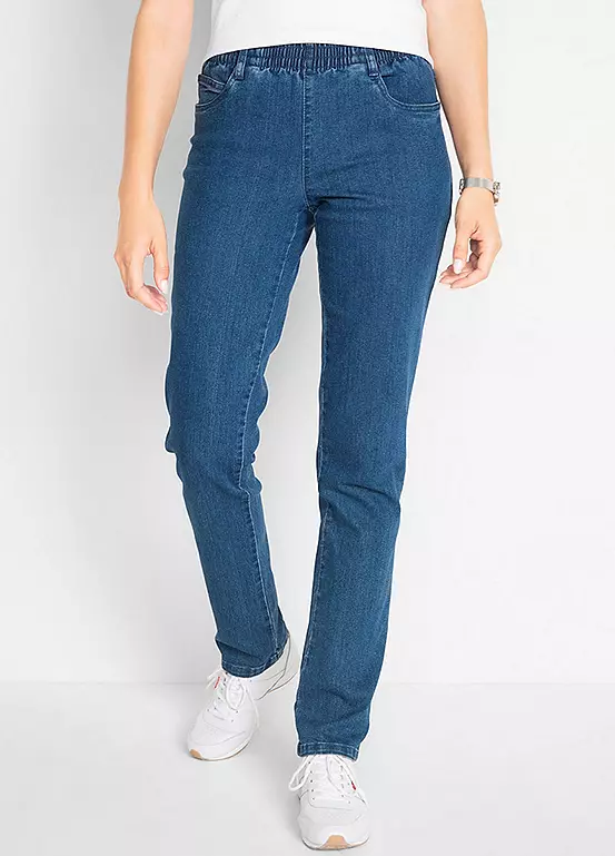 Two pairs of stretch cotton trousers with an elasticated waist. 1 x Mulberry and 1 x Black. Machine washable. 97% Cotton, 3% Elastane, White: 82% Cotton, 17% Polyester, 1% Elastane.