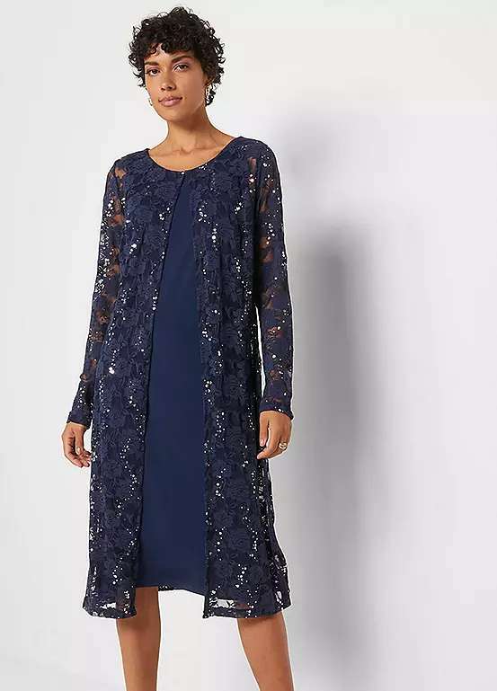Pretty party dress and a co-ordinating lace cardigan. Hand wash. Length approx. 98 cm.