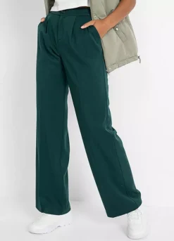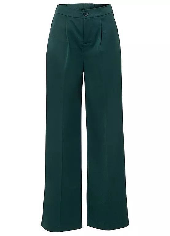Single pleat trousers with a wide leg. Inside leg approx. 83.5 cm.