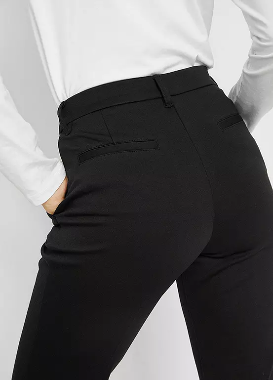 A pair of pleated trousers in smart ponté material. Machine washable. 70% Polyester, 25% Viscose, 5% Elastane.