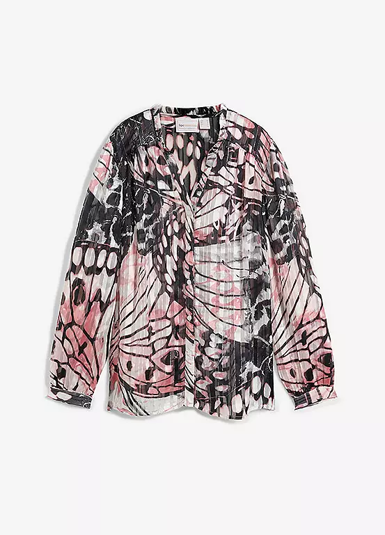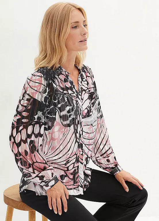 Floaty chiffon blouse with long sleeves. Machine wash. Length approx. 70 cm.