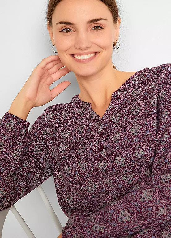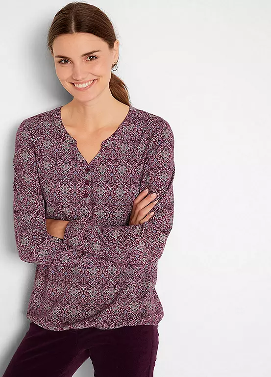 A printed top with a button collar. Machine washable. Length approx. 70 cm.