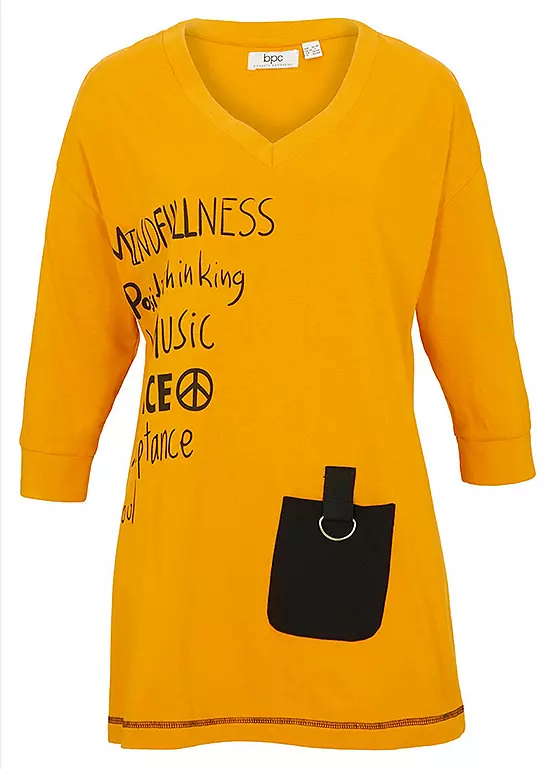 Jersey top with a pocket and three-quarter length sleeves. 100% Cotton. Length approx. 76 cm.
