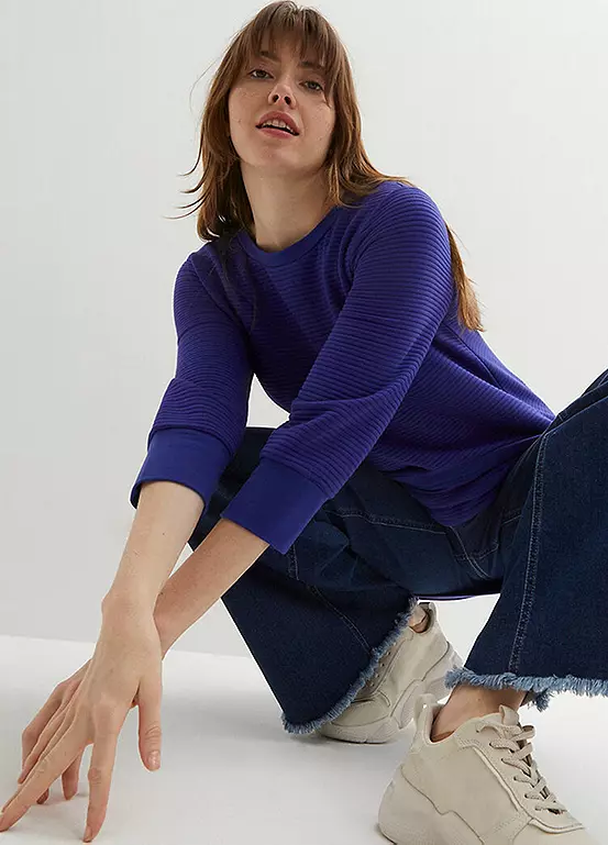 Ribbed sweatshirt. Length approx. 76 cm.