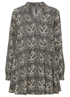 Glossy satin top with a leopard print and frothy lace trim. Machine washable. 100% Polyester. Length approx. 64 cm.
