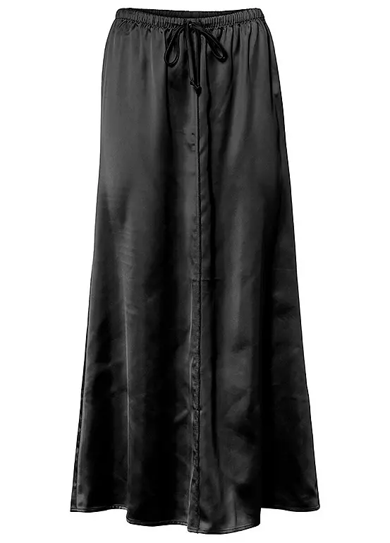 Fashionable skirt in glossy material with an elasticated waist. Length approx. 90 cm.
