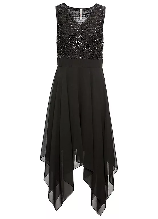 A feminine chiffon shell dress with a sparkly sequin bodice for a wow effect. Length approx. 98 cm.
