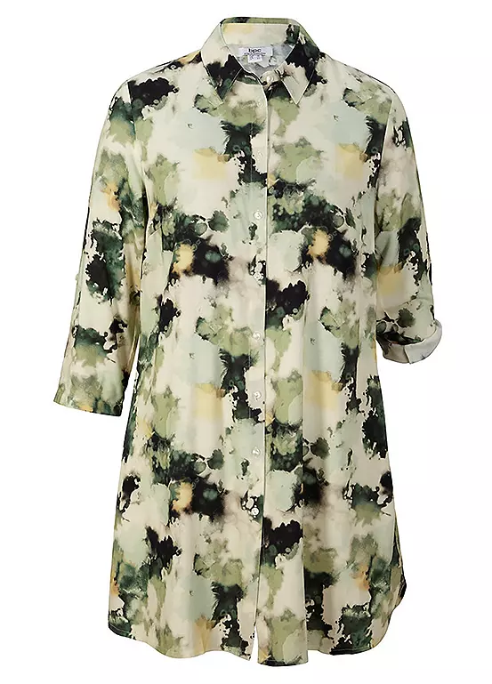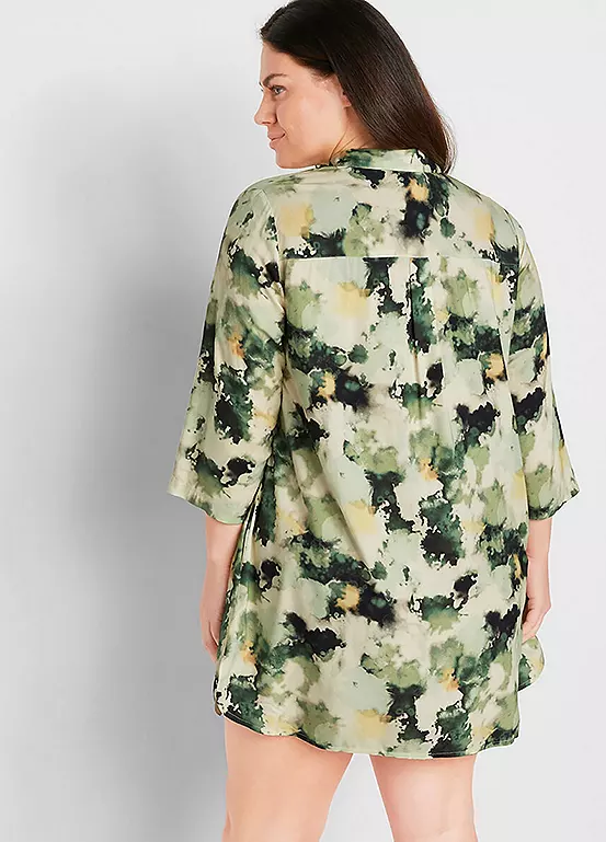Sustainable viscose printed short dress with buttoning. Machine washable. Length approx. 86 cm.