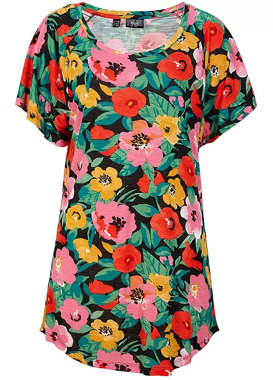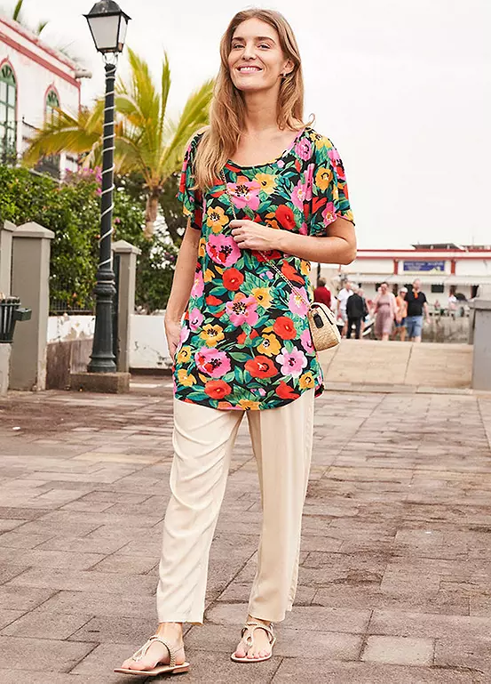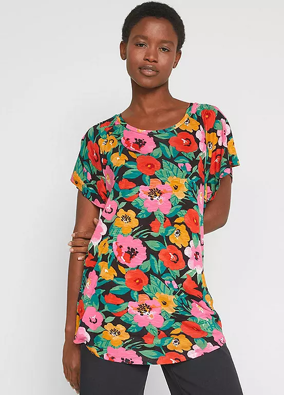 A longline t-shirt in soft yarn with fluted sleeves. Machine washable. 100% Viscose. Length from approx. 68 to 78 cm.