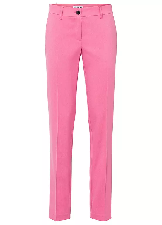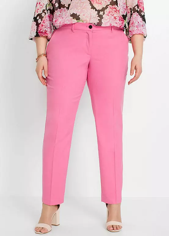 These pleated trousers come with a straight leg and a zip and button fly. Machine washable. 76% Polyester, 22% Viscose, 2% Elastane.