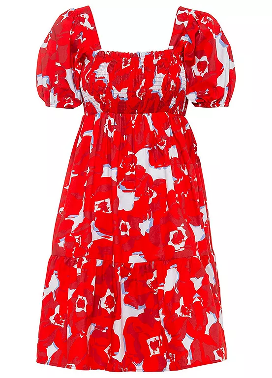 Cotton floral dress with smocking. 100% Cotton. Length approx. 94 cm.