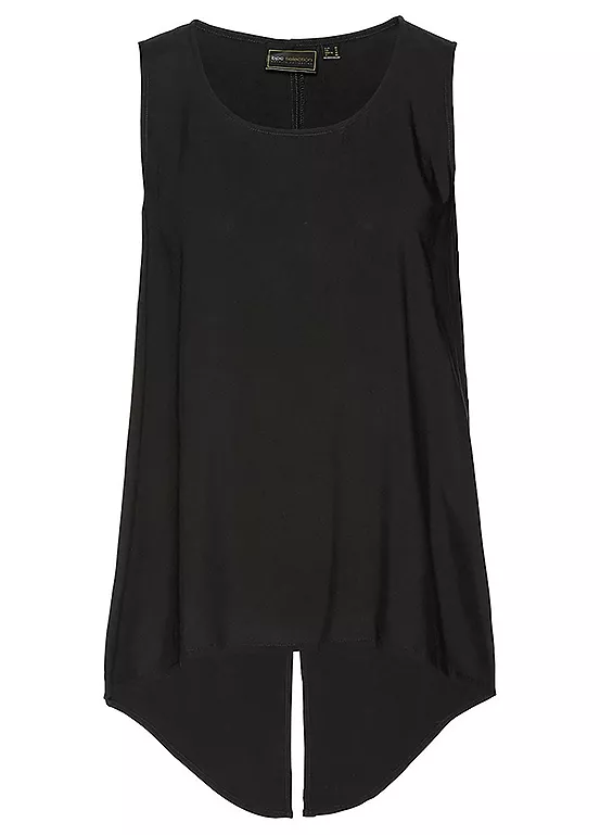 A smooth viscose vest with a dipped hem at the back that has a slit in it. Machine washable. 100% Viscose. Length from approx. 75 to 84 cm.