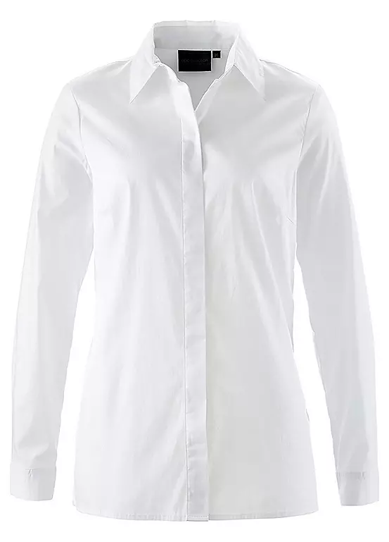 Timeless stretch blouse with concealed button placket. Machine wash. Length approx. 70 cm.