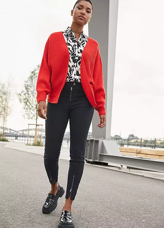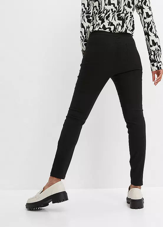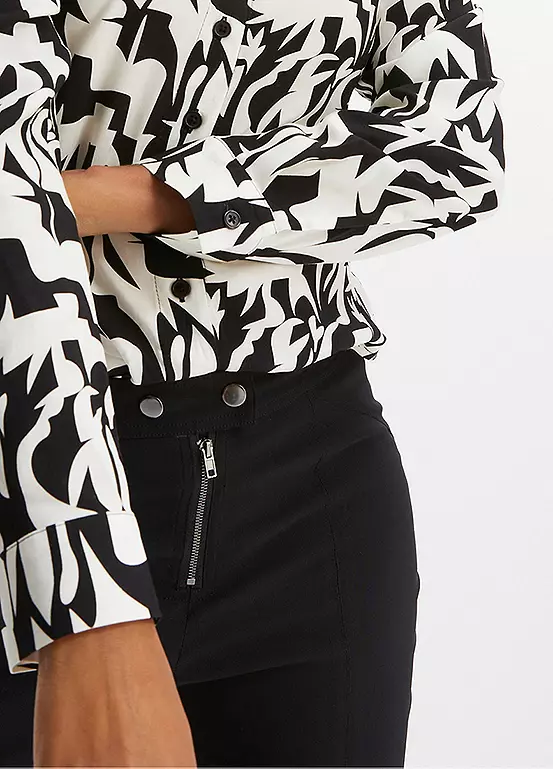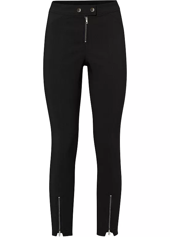 Stretchy bengaline trousers with seams and a zip fly. Inside leg approx. 71.5 cm.