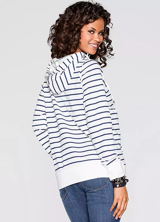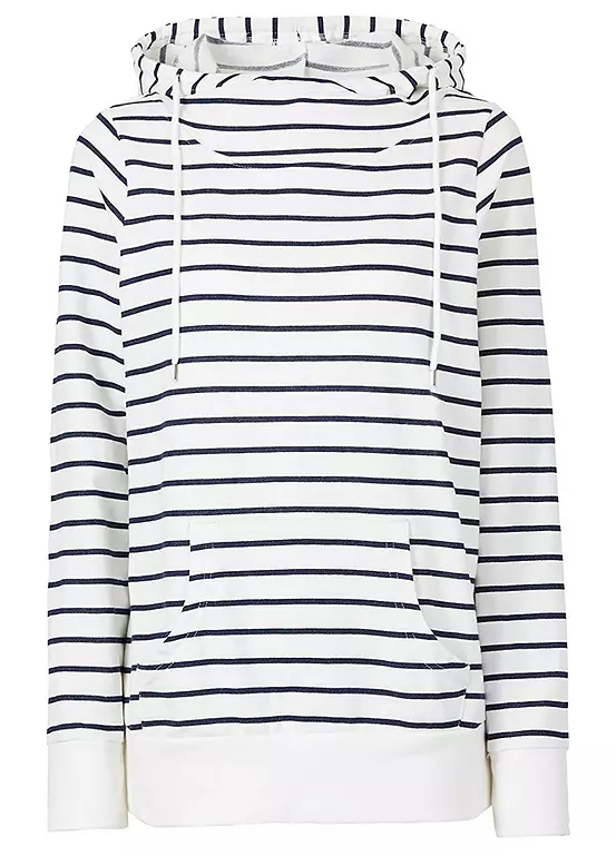 Casual cotton jersey hoodie featuring a high drawstring collar and a front pouch pocket.