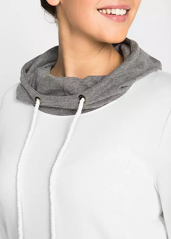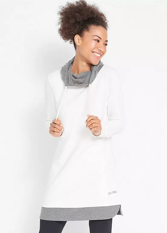 This cool short sleeve sweatshirt dress comes with a large collar and a drawstring hood at the back. Thereโs a small embroidered motif above the hem and a pair of leggings included to wear with the dress. Machine washable. Length of dress approx. 88 cm.