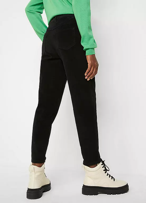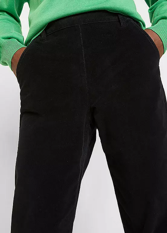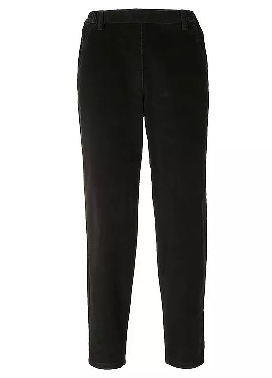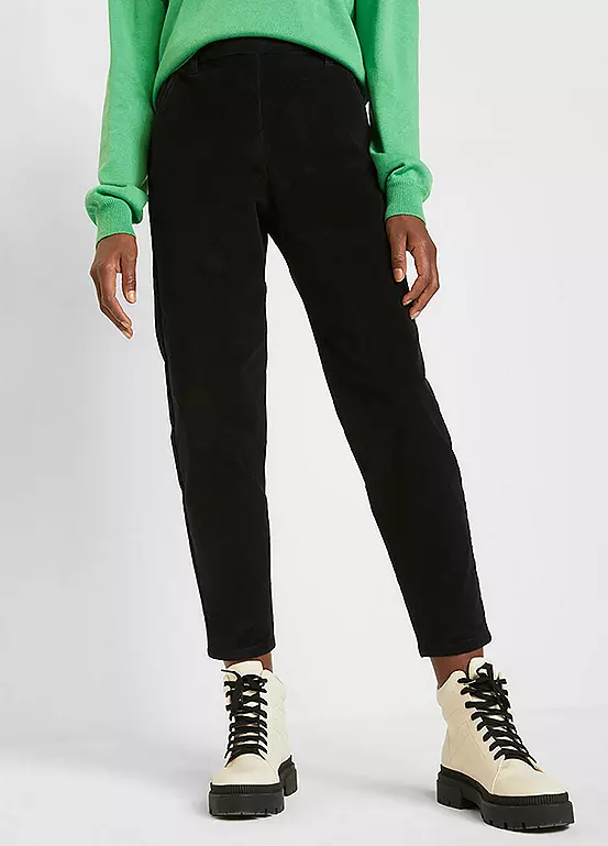 Cotton corduroy trousers with elasticated sides. Machine washable.