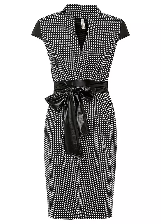 A short checked dress with pleather trim. Machine washable. Length approx. 98 cm (38 in)