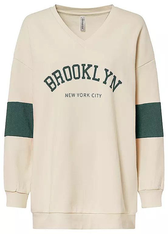 This printed long sleeve oversized sweatshirt with soft cotton fabric featuring an embroidery on the chest, with rib cuffs on both the sleeves and on waistband which adds an extra sense of comfort to the sweatshirt. Perfect to keep you warm on those cooler summer evenings. Machine washable. 60% Cotton (Cotton made in Africa), 40% Polyester (Recycled). Length approx. 76 cm.