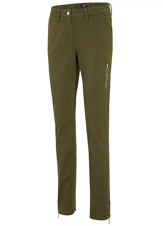 Stretchy cotton trousers with zip pockets at the legs. Inside leg approx. 79.5 cm.